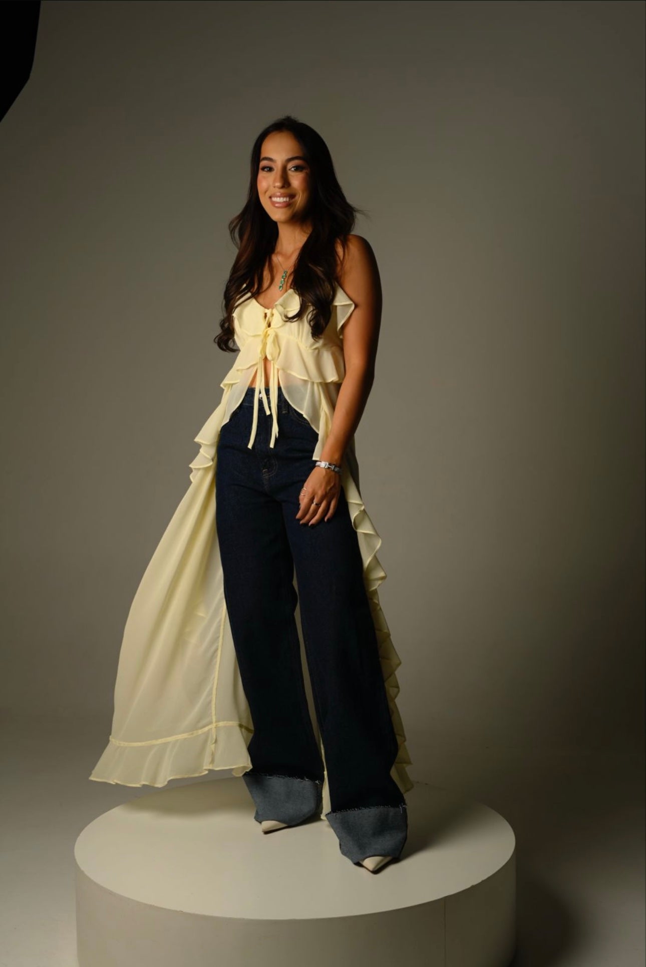 A Calça Olga é a tradução do jeans fashion com atitude. O detalhe da barra cria um efeito visual marcante, que adiciona textura e originalidade ao look.