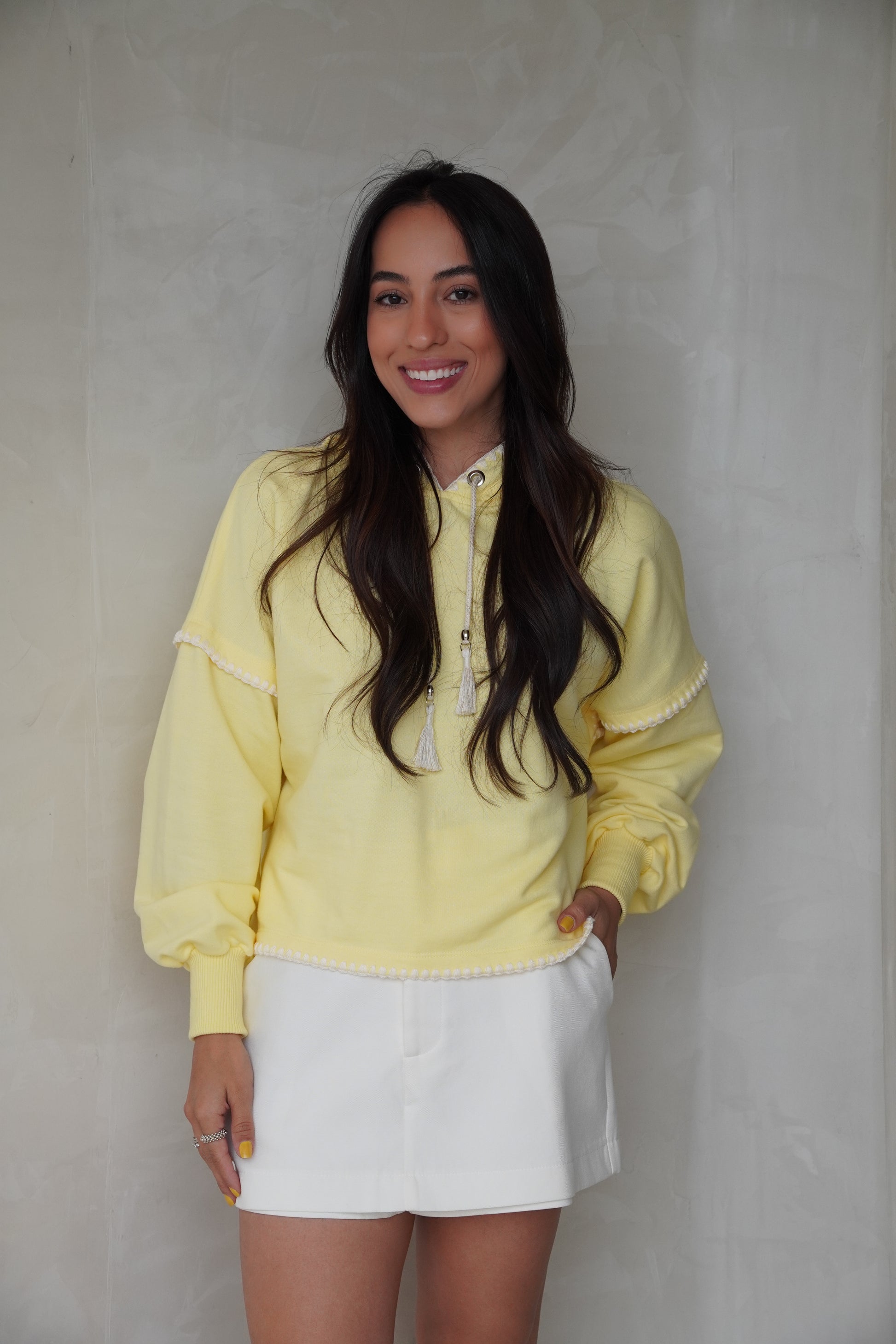 Este moletom traz punhos ajustados que valorizam o caimento e deixam o visual mais moderno. Os detalhes adicionam um toque sofisticado e artesanal, tornando cada peça única, essencial do guarda-roupa que vai do dia a dia ao fim de semana.