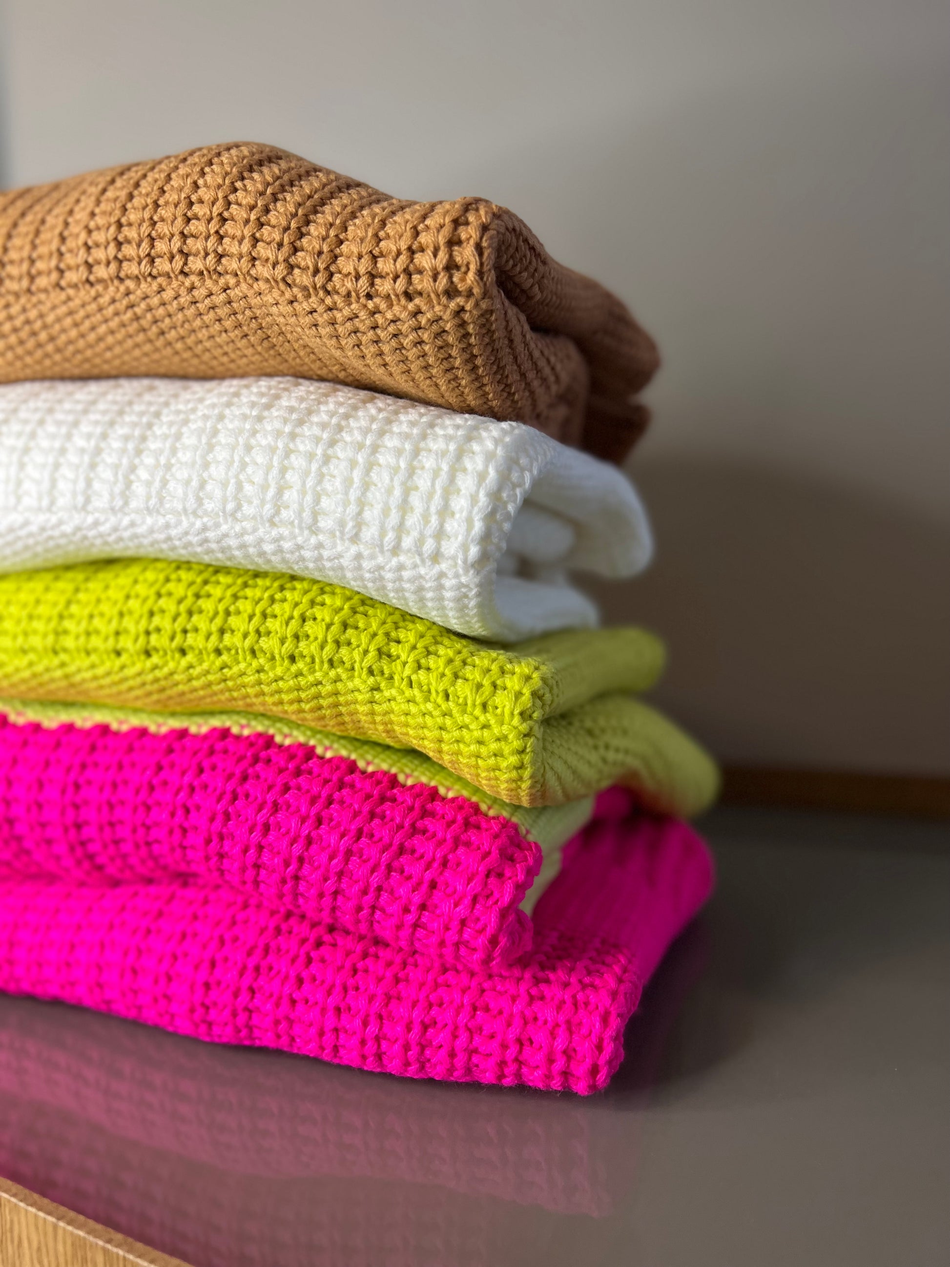 A versatilidade das peças em tricot é indiscutível, perfeito para ocasiões mais descontraídas com um bom jeans ou para compor looks mais elaborados para usar a noite. Além de ser ótimo para viagens, por ser uma peça que não amassa.