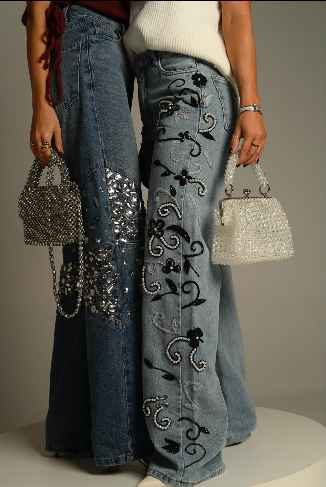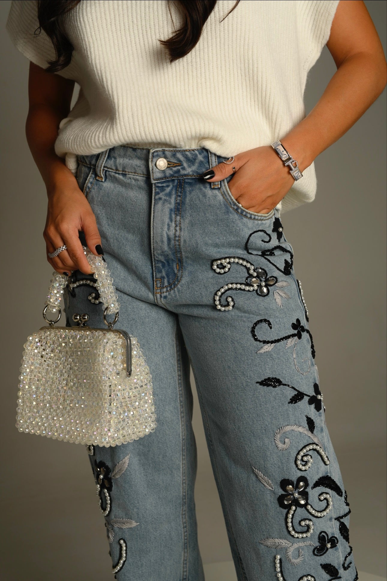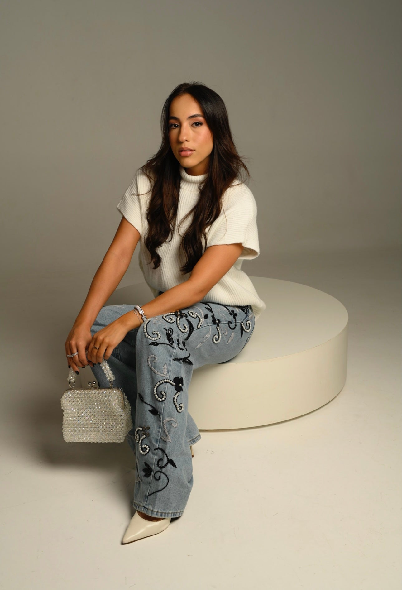 Com shape moderno e sofisticado, a Calça Santorini ganha destaque absoluto aos bordados feitos à mão, que a transformam em uma peça fashion com toque artesanal e exclusivo.